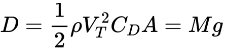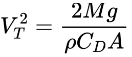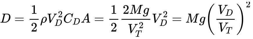 Now to determine the shock load, we must find the maximum tension in the wire. The maximum tension in the wire will occur when the drag force is maximised. We first simplify the drag force in terms in the flight speed V and the terminal speed V_T.