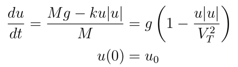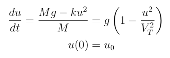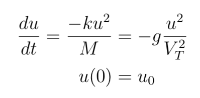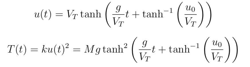 where positive u implies a speed downwards. Solving this, we get,